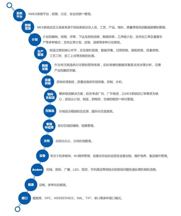 RMES 3.0系統(tǒng)是北自所針對制造行業(yè)專門設(shè)計研發(fā)的MES系統(tǒng)平臺,具有自主知識產(chǎn)權(quán),是在原有MES 1.0和2.0的基礎(chǔ)上,在工藝流程可配置、移動應(yīng)用等方面進(jìn)行了全面提升。RMES 3.0包含生產(chǎn)建模、計劃、制造過程、質(zhì)量、倉儲物流、ANDON等管理模塊,并結(jié)合智能移動應(yīng)用、大數(shù)據(jù)處理、智能報表平臺等先進(jìn)技術(shù),實現(xiàn)了發(fā)動機裝配制造過程的數(shù)字化管控,從訂單下達(dá)到產(chǎn)品完成的整個生產(chǎn)過程進(jìn)行優(yōu)化管理,對工廠事件及時作出響應(yīng)、報告、跟蹤及處理。該系統(tǒng)在組織管理企業(yè)制造流程、優(yōu)化工藝流程和倉儲物流、切實提高制造和管理效率、降低生產(chǎn)成本等方面發(fā)揮了明顯的作用,是精益生產(chǎn)、精益物流等管理思想在企業(yè)的良好載體和實踐平臺,是企業(yè)踐行兩化融合、推進(jìn)智能制造的核心方案。目前RMES 3.0已成功應(yīng)用于國內(nèi)眾多企業(yè)。