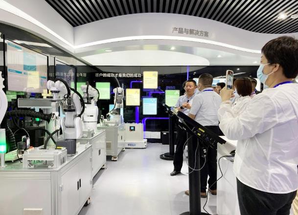 隨后,學習小組參觀了北自所智能制造實驗室。實驗室是基于智能制造整體解決方案打造而成,將設(shè)備、自動化產(chǎn)線、智能物流倉儲系統(tǒng)、生產(chǎn)指揮系統(tǒng)、工業(yè)管理軟件等智能制造的關(guān)鍵環(huán)節(jié)進行精準還原和完整呈現(xiàn)。在參觀了智能制造實驗室之后,學習小組對智能制造過程有了更直觀、真切的感受。