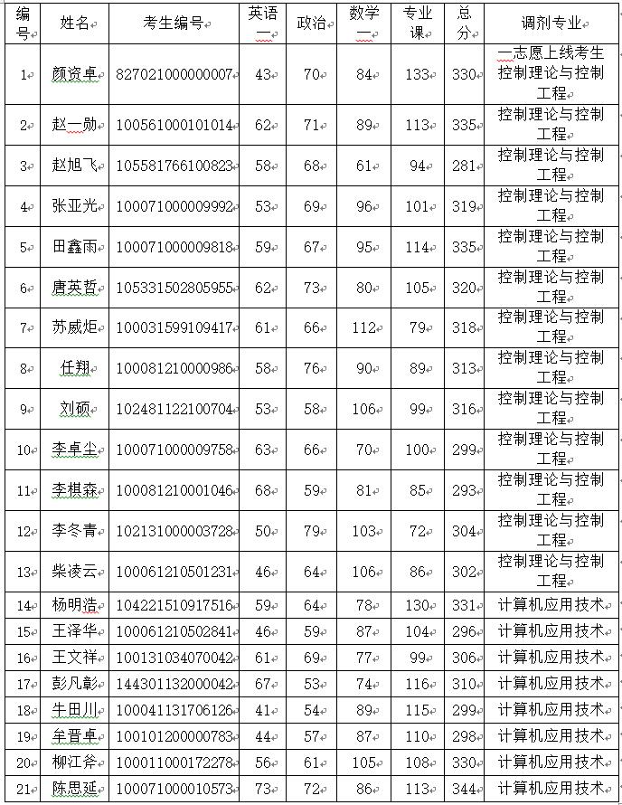 根據(jù)“北京機(jī)械工業(yè)自動(dòng)化研究所2021年碩士研究生招生復(fù)試工作辦法”,現(xiàn)將北京機(jī)械工業(yè)自動(dòng)化研究所2021年度碩士研究生入學(xué)考試復(fù)試名單公布如下: