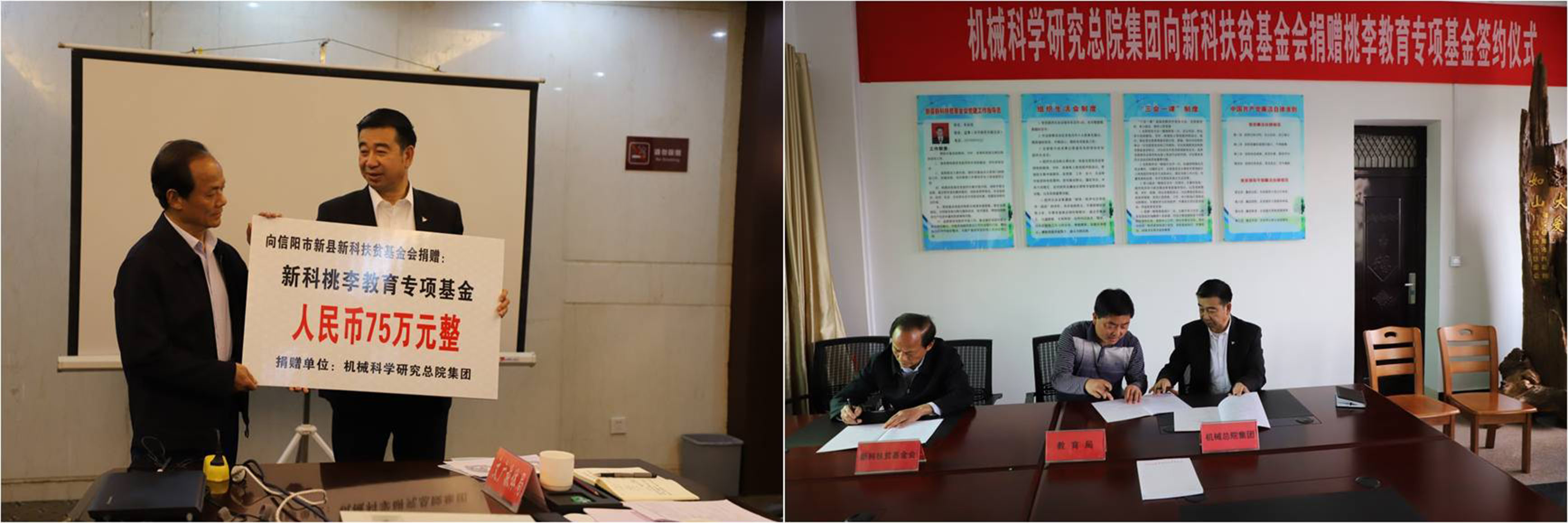 座談會后,機械總院集團向新科扶貧基金會捐贈75萬元“新科桃李獎學金”。