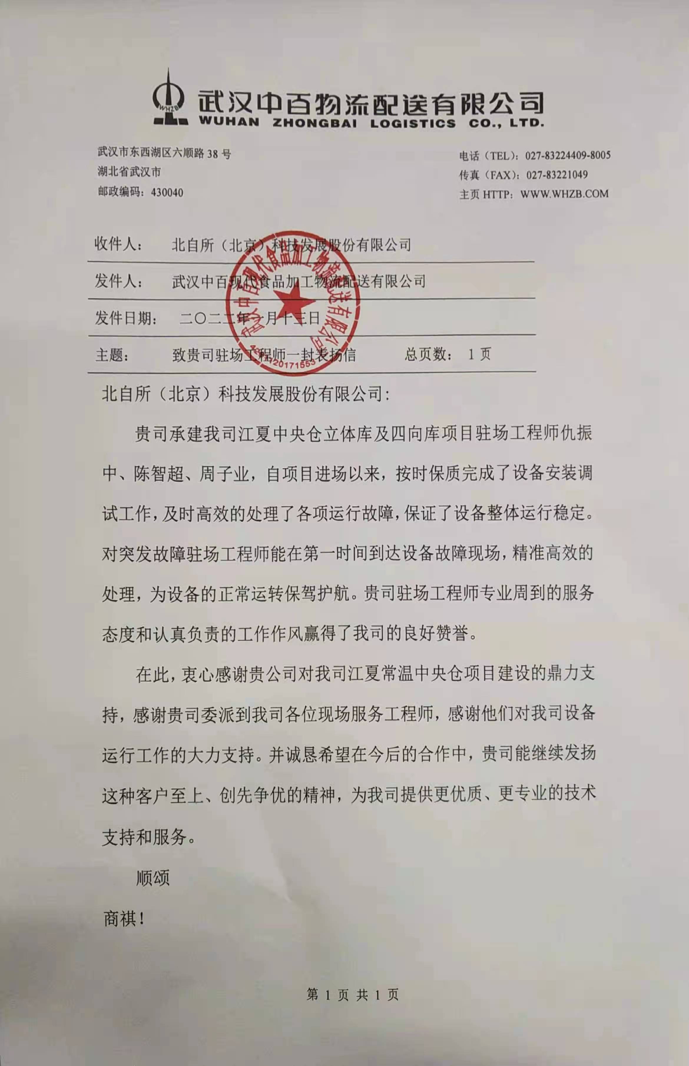 此時(shí)此刻,北自科技的駐場(chǎng)工程師們正忙碌在各個(gè)一線項(xiàng)目現(xiàn)場(chǎng),他們及時(shí)高效的處理各項(xiàng)運(yùn)行故障,保證設(shè)備整體運(yùn)行穩(wěn)定,為設(shè)備的正常運(yùn)轉(zhuǎn)保駕護(hù)航。這封感謝信既是肯定,也是激發(fā)我們前行的動(dòng)力。北自科技將以此為標(biāo)準(zhǔn),不斷進(jìn)取,以實(shí)際行動(dòng)踐行為客戶“交付美好”的企業(yè)理念。