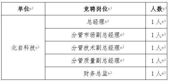為進一步加強公司干部隊伍建設,激發(fā)干部隊伍活力,創(chuàng)新選人用人方式,拓寬選人用人渠道,經(jīng)黨委研究,決定對北自科技經(jīng)理層開展公開招聘?,F(xiàn)將有關事項通知如下: